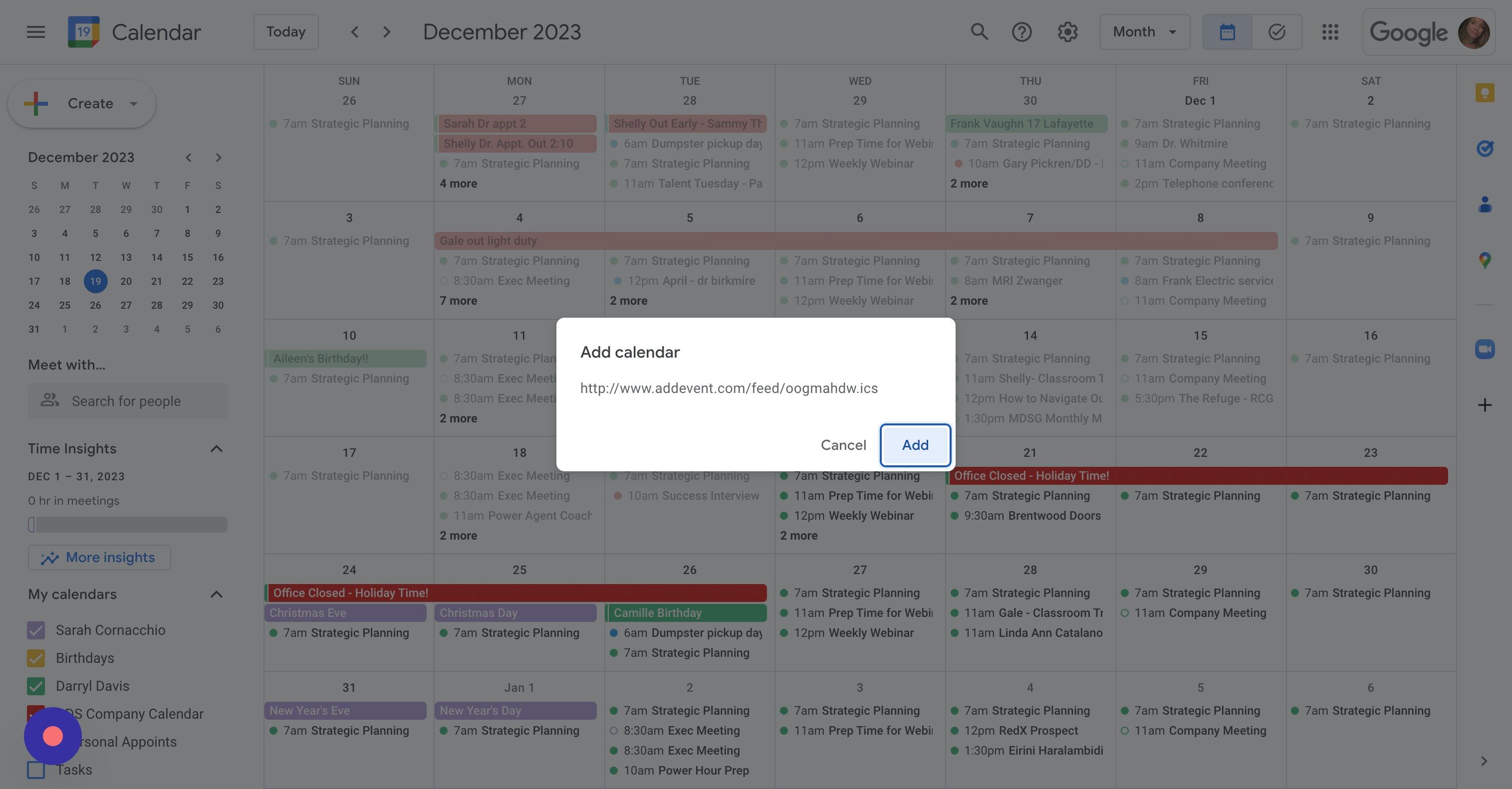6. Select the Calendar you want to add it to. In this example, we're choosing Google!