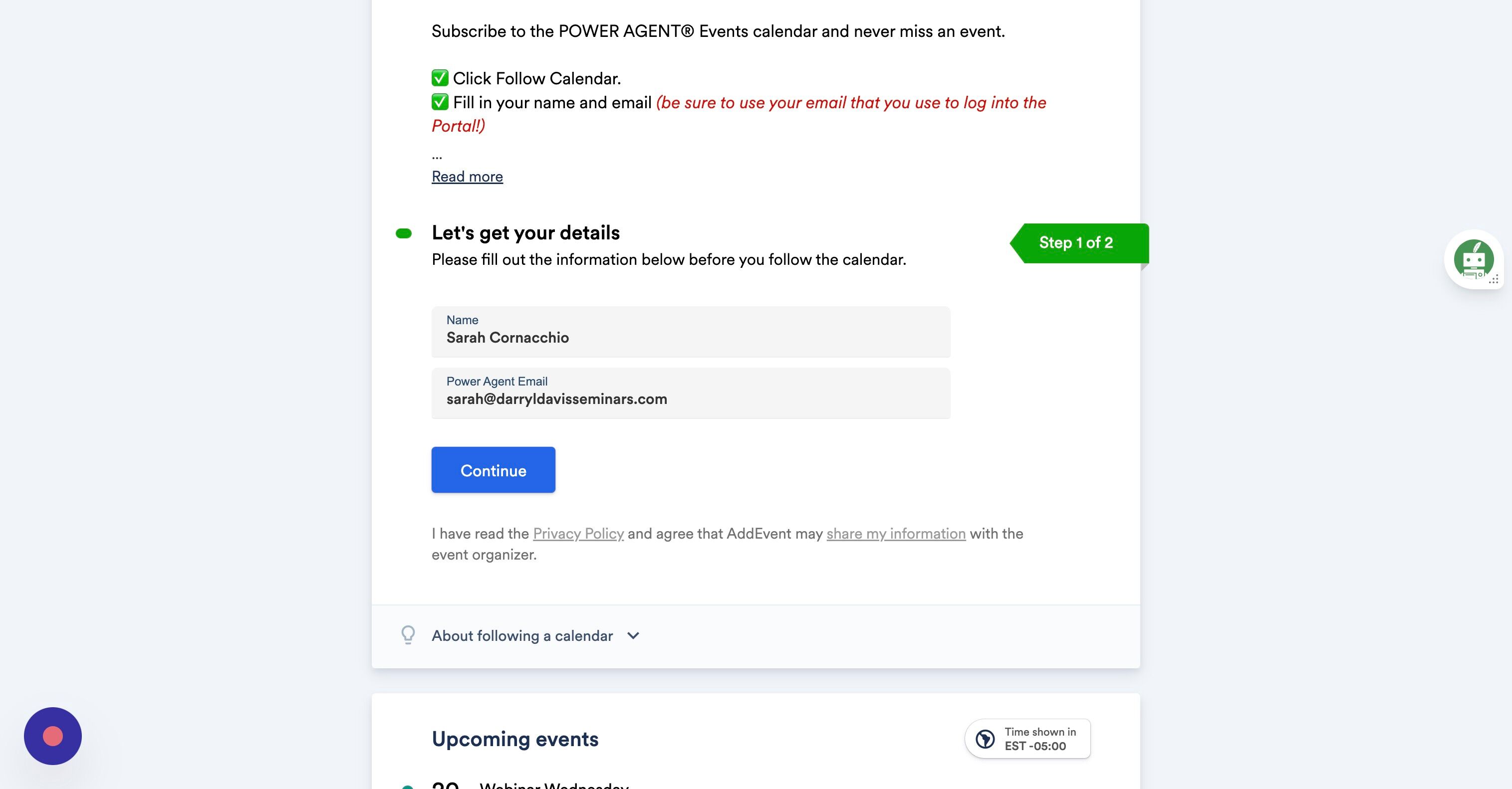4. Enter your name and your POWER AGENT® email (the one you use to login!). Then click Continue.
