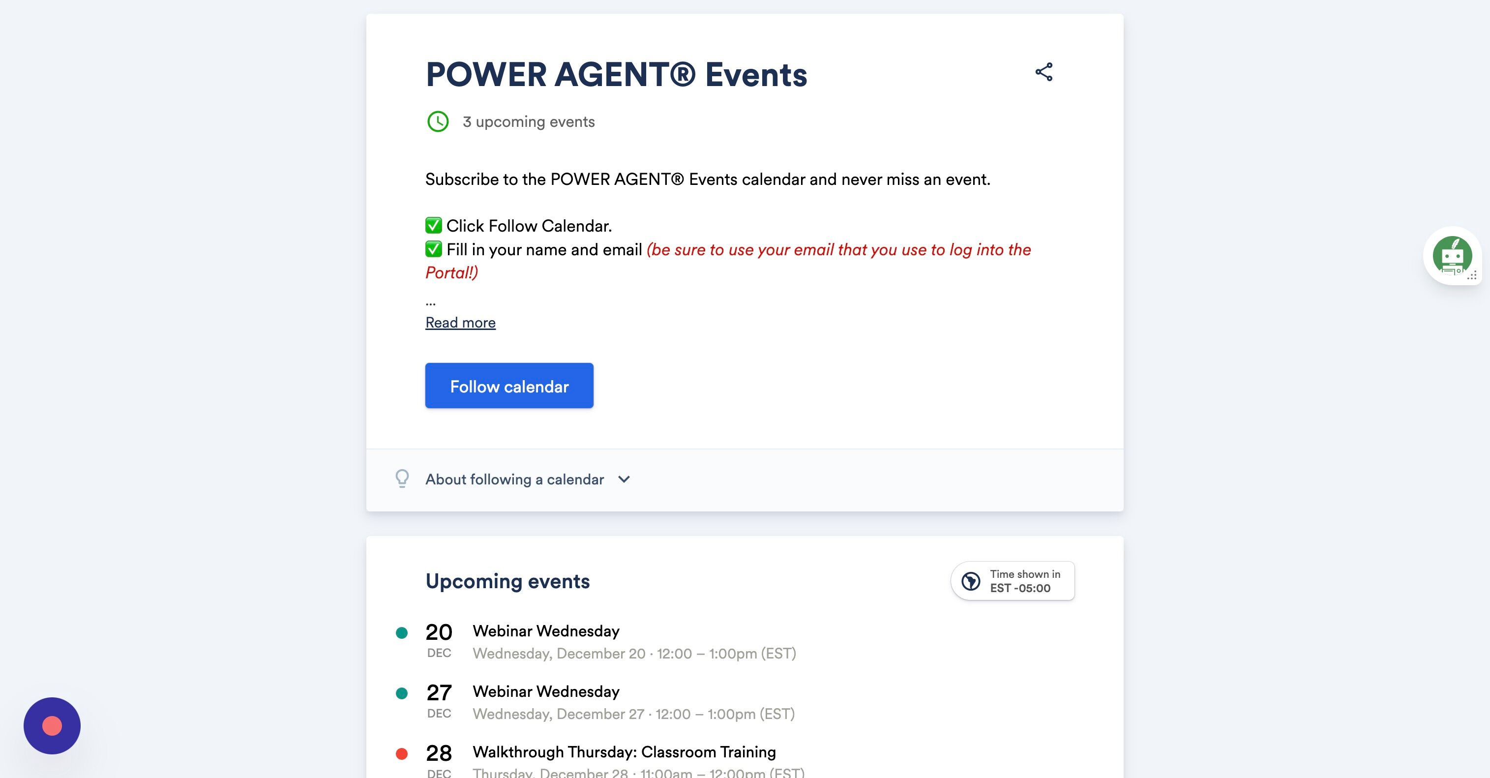 1. At the top right-hand corner of your Power Agent® Portal, click Calendar.