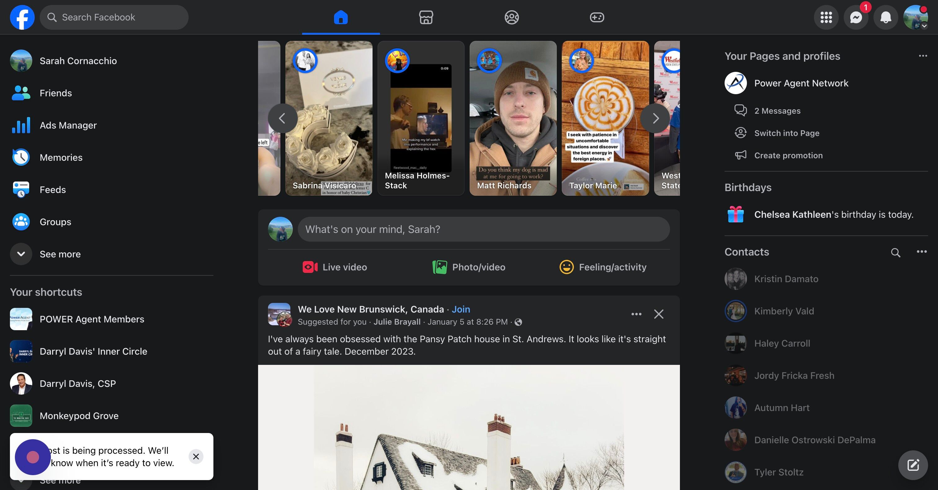 6. You'll receive a notification on the bottom left-hand corner that says, "Your post is being processed. We’ll let you know when it’s ready to view."