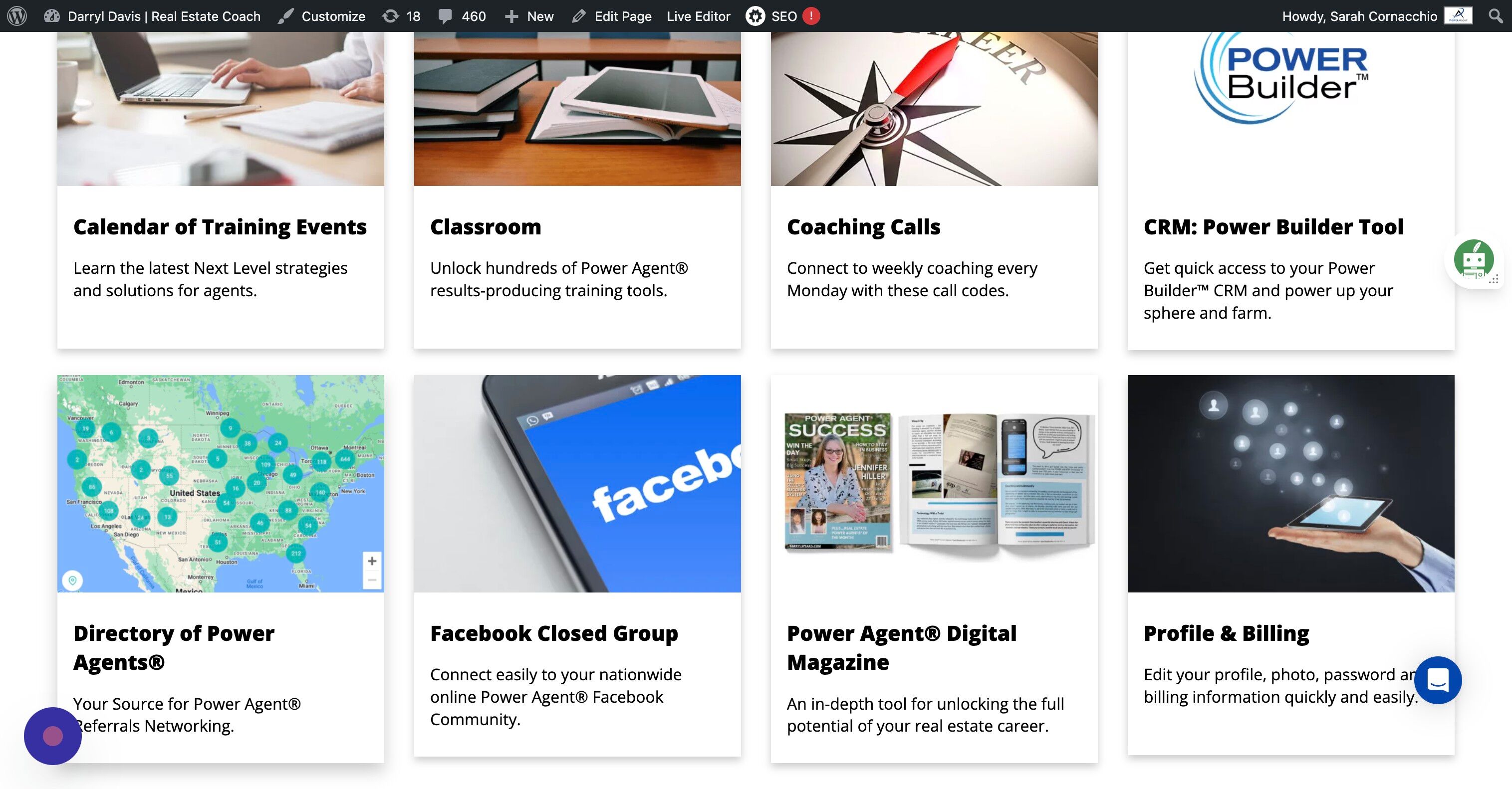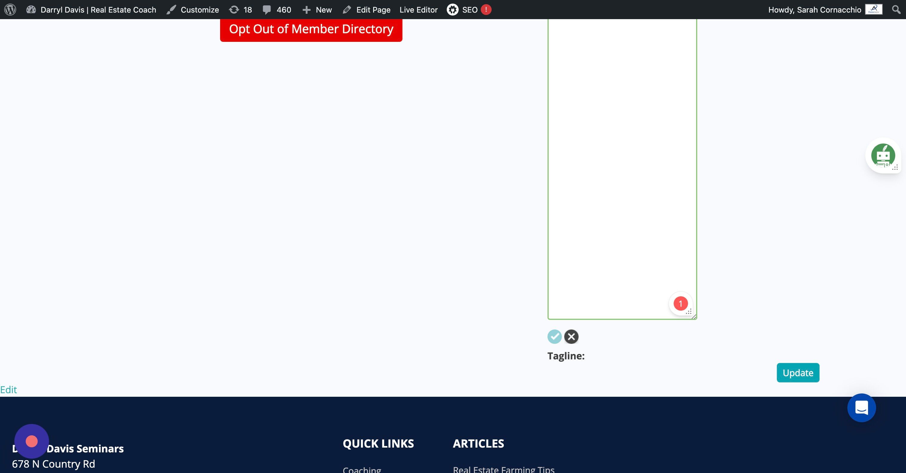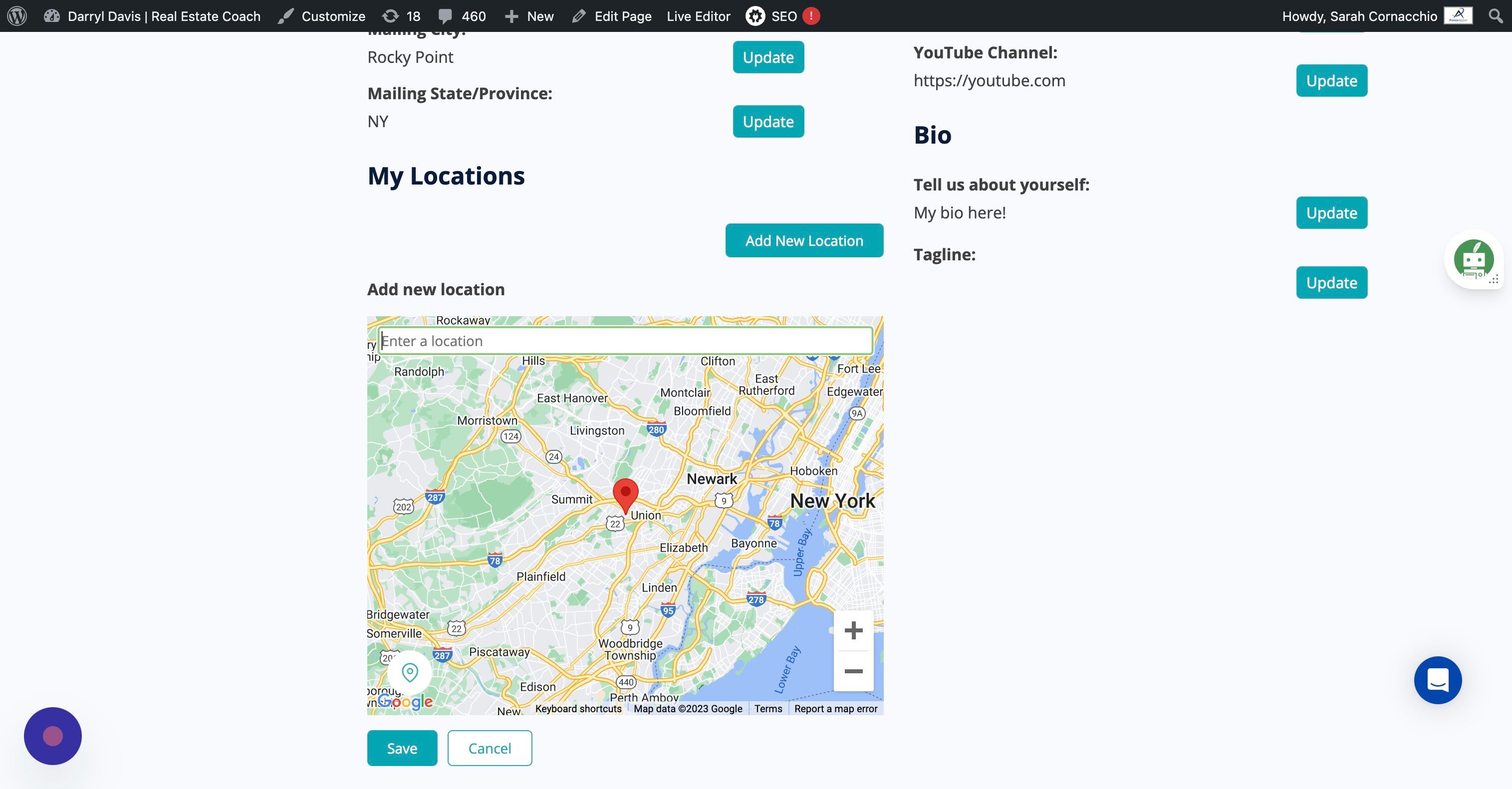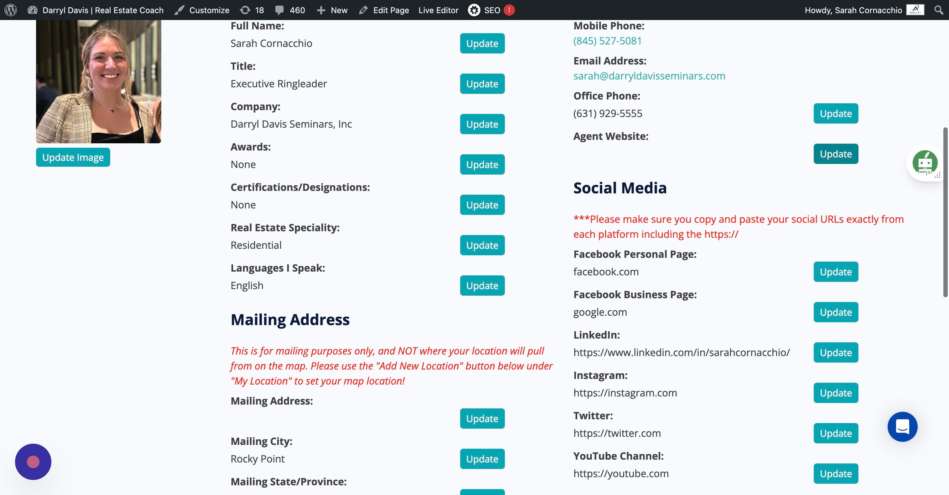 Tutorial – How to Update Your Directory Profile & Use the Directory 1. Navigate to the Dashboard. 2. Click "Directory of Power Agents®" 3. Click "Update My Profile" 4. Click "Update" next to Full Name to update your display name. 5. Click the blue checkmark to save that field. 6. Click "Update" 7. Type in your title, then click the blue checkmark to save that field. 8. Repeat this process for all the fields on your profile! 9. Remember to always click the blue checkmark to save that field. 10. To update your social media pages, click "Update" next to the field you'd like to update. In this example, I'm updating my Facebook page. 11. Navigate to https://www.facebook.com/ 12. Click your profile photo to choose your Facebook profile. 13. Select the profile you want to enter into the Directory. 14. Copy the url (CTRL+C) in the URL bar exactly as it is! 15. Head back to the tab where you were updating your Directory Profile, and paste (CTRL+V) that in that field. Click the blue checkmark to save the field! 16. Click "Add New Location" 17. Click the "Enter a location" field. 18. Type the city you are in. 19. Click "Save" 20. Click "Update" to enter your bio. 21. Type out your bio! 22. Click the blue checkmark to save that field. 23. Click "HEAD BACK TO THE DIRECTORY" 24. Click the "City, state or zip" field. 25. Type in a city to see the agents there! 26. In this example, I'm entering "New Paltz, NY, USA" 27. Click the "Search by keyword" field. 28. Type your criteria into the search. You can input a name, designation, award, language spoken, or anything else except for a Location! 29. Choose the member you were looking for!